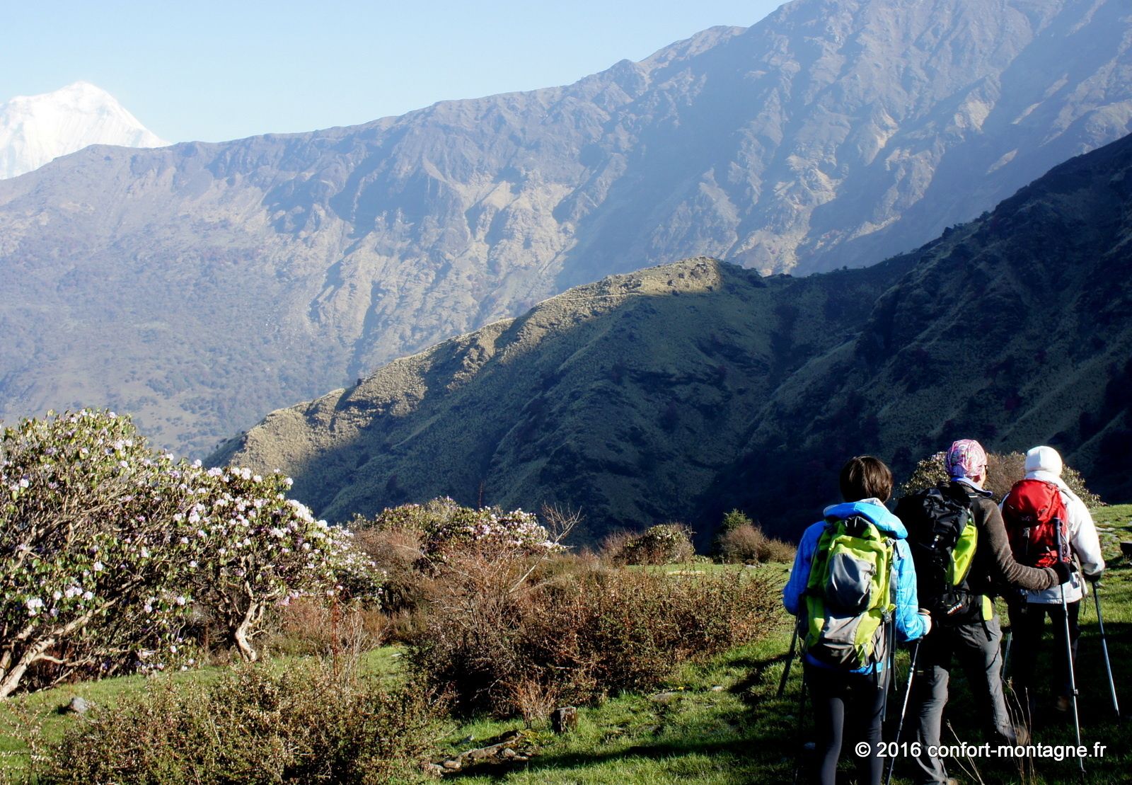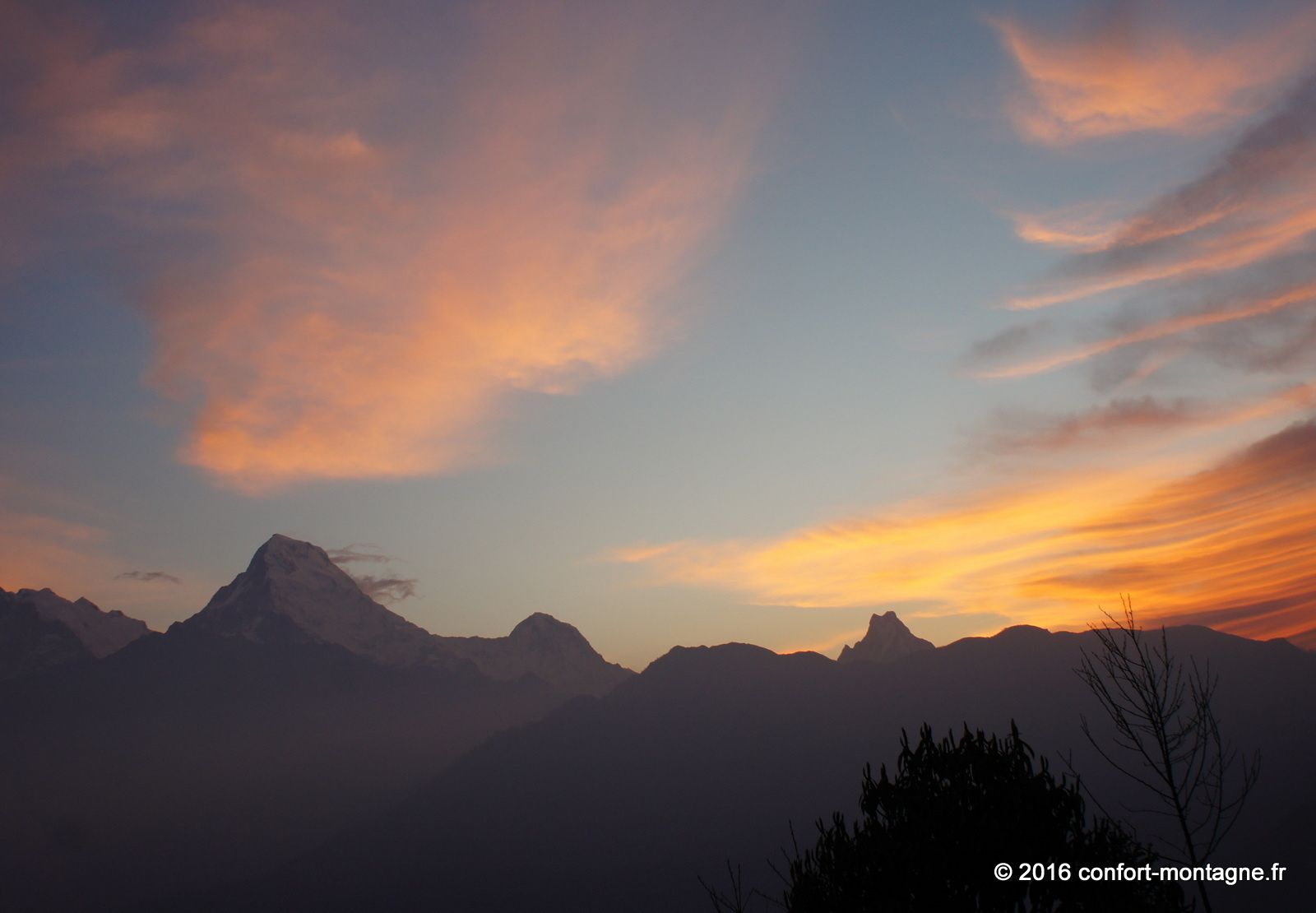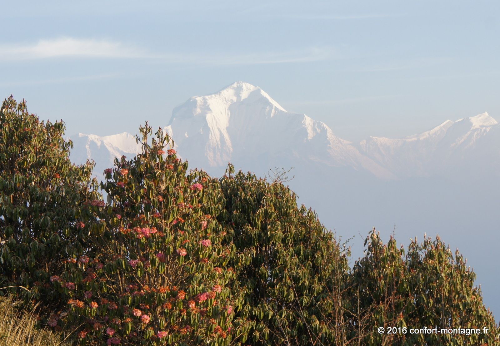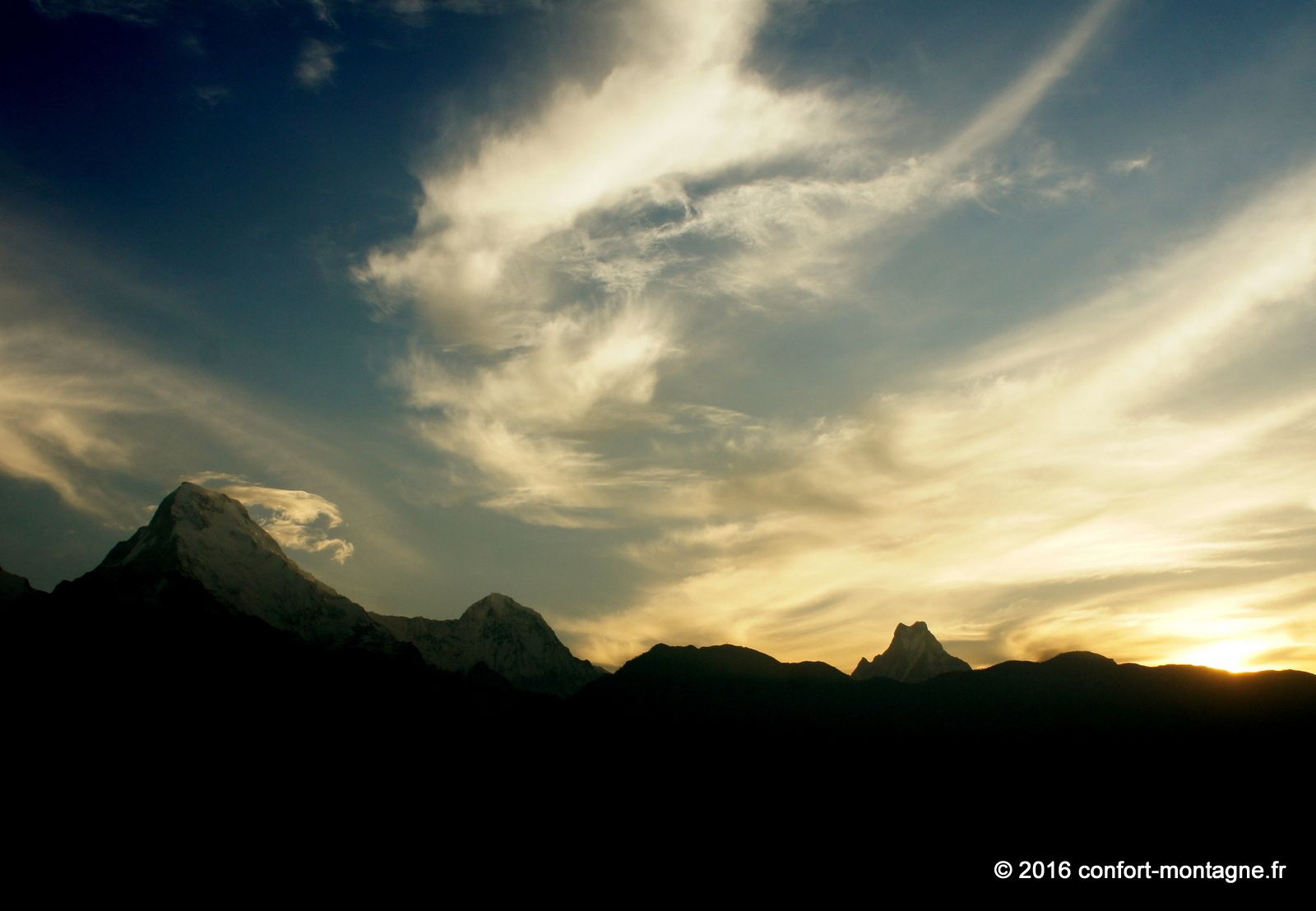 Quel spectacle ! L'effort fourni par chacun, la solidarité du groupe, le rythme lent et régulier de notre marche pour parvenir dans ce lieu magique nous remplisent d'émotion. Nous rejoignons ensuite un sentier descendant, rarement utilisé autrement que par les locaux, pour rejoindre le village de Ghorepani, sur la route classique du tour des Annapurnas. Un chemin de retour qui nous comblera, à travers les épaisses forêts de rhododendrons et les villages. Les points de mire sont fantastiques sur les montagnes. Au passage par Poon Hill (3193 m) nous profitons du superbe lever du soleil sur un panorama majestueux qui s’ouvre du Dhaulagiri Himal (8167 m) à la "Queue de Poisson" ou Fish Tail, le surnom du Machapuchare (6997 m). Un retour plein d'entrain et d'échanges avec notre équipe locale composée de 22 personnes. 13 porteurs et 9 Sherpas (cook et staff guides). Ils auront vraiment été à la hauteur ! Toujours présents et attentionnés, ils ont grandement participé à la réussite ce séjour. Merci Kalu (Notre Sirdar Guide), Subash (Assistant Guide), Prem (Notre Chef cuistot), Wanglama (Assistant cuisine), Beshal, Lakpa Titung, Mengmar Dorje, Mengmar Titung, Mengmar Sherpa et les porteurs...