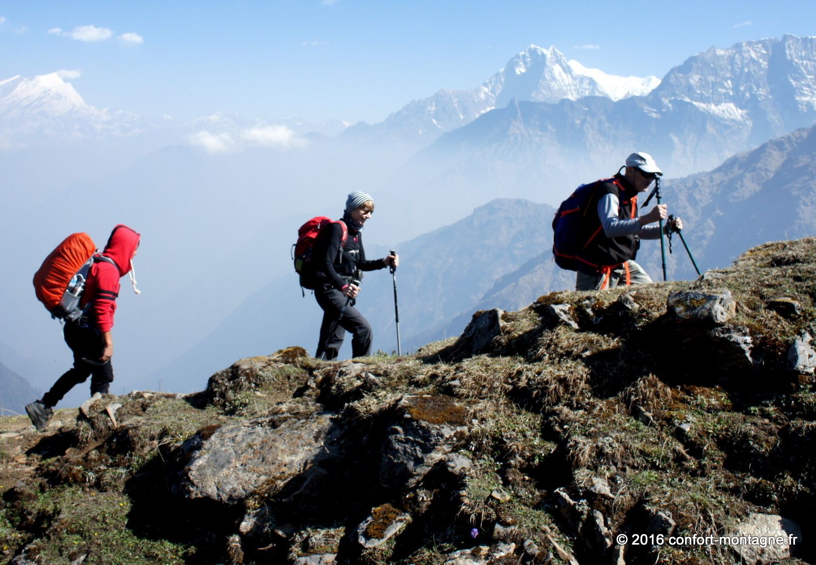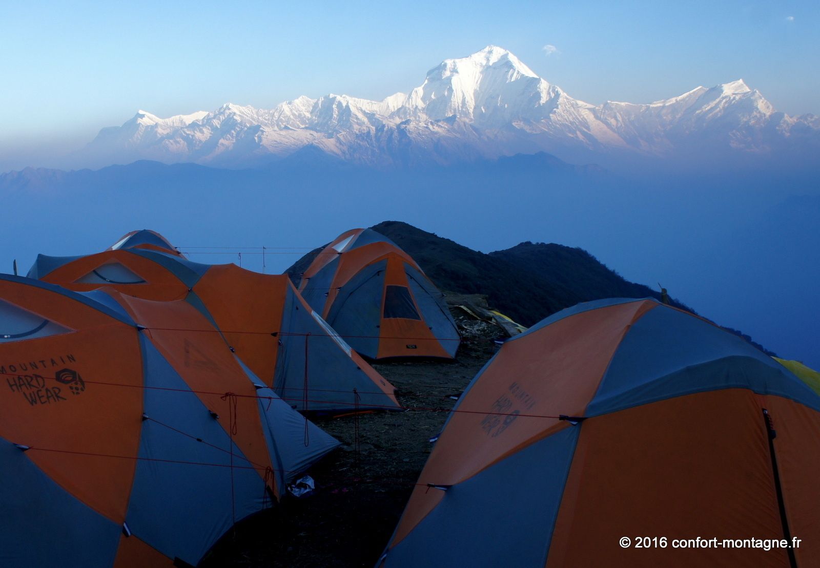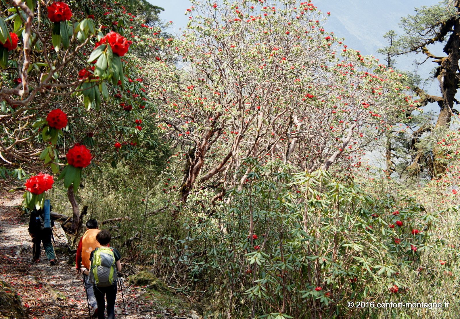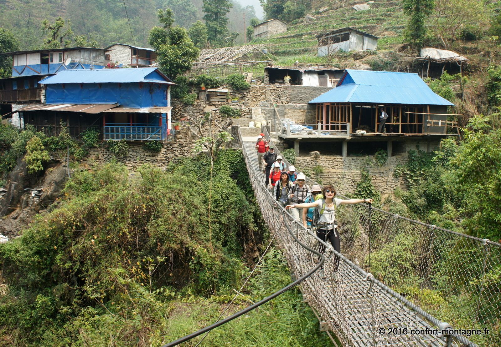 Quel spectacle ! L'effort fourni par chacun, la solidarité du groupe, le rythme lent et régulier de notre marche pour parvenir dans ce lieu magique nous remplisent d'émotion. Nous rejoignons ensuite un sentier descendant, rarement utilisé autrement que par les locaux, pour rejoindre le village de Ghorepani, sur la route classique du tour des Annapurnas. Un chemin de retour qui nous comblera, à travers les épaisses forêts de rhododendrons et les villages. Les points de mire sont fantastiques sur les montagnes. Au passage par Poon Hill (3193 m) nous profitons du superbe lever du soleil sur un panorama majestueux qui s’ouvre du Dhaulagiri Himal (8167 m) à la "Queue de Poisson" ou Fish Tail, le surnom du Machapuchare (6997 m). Un retour plein d'entrain et d'échanges avec notre équipe locale composée de 22 personnes. 13 porteurs et 9 Sherpas (cook et staff guides). Ils auront vraiment été à la hauteur ! Toujours présents et attentionnés, ils ont grandement participé à la réussite ce séjour. Merci Kalu (Notre Sirdar Guide), Subash (Assistant Guide), Prem (Notre Chef cuistot), Wanglama (Assistant cuisine), Beshal, Lakpa Titung, Mengmar Dorje, Mengmar Titung, Mengmar Sherpa et les porteurs...
